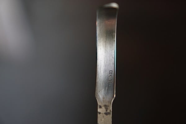 日本の鑿や鉋の刃と同じように刃の裏を窪ませています。そうする事で研ぎ棒を安定させて動かす事が出来るので正確に刃先を捉えて短い時間で研ぎ上げる事が出来ます。